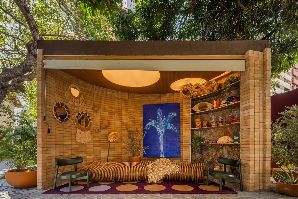 A proposta é também sensorial: cores intensas e tons terrosos homenageiam as sementes crioulas, guardiãs da biodiversidade e da memória cultural. Um mural assinado pela artista cearense Marta Brizeno representa o ato de semear como continuidade e esperança, enquanto o ambiente reúne peças de artistas e designers locais como Wilson Neto, Estúdio Sabá e Bekka Studio, em diálogo entre território, arte e ancestralidade.