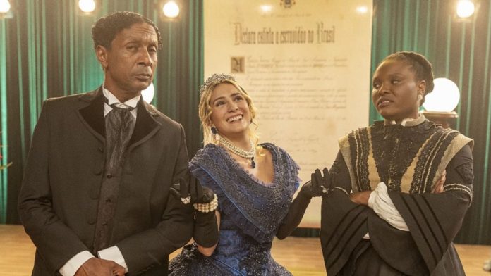 Luis Miranda, Luisa Perissé e Luellem de Castro no elenco de Falas Negras. (Foto: Globo/ Manoella Mello)