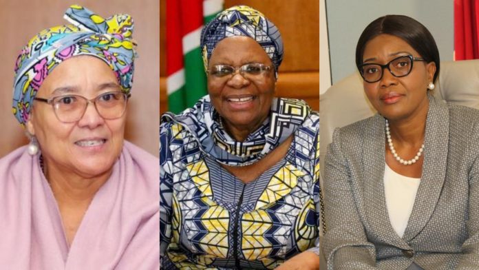 Da direita para a esquerda: vice-presidente Lucia Witbooi, presidente Netumbo Nandi-Ndaitwah e presidente da Assembleia Nacional Saara Kuugongelwa-Amadhila. (Fotos: Reprodução)